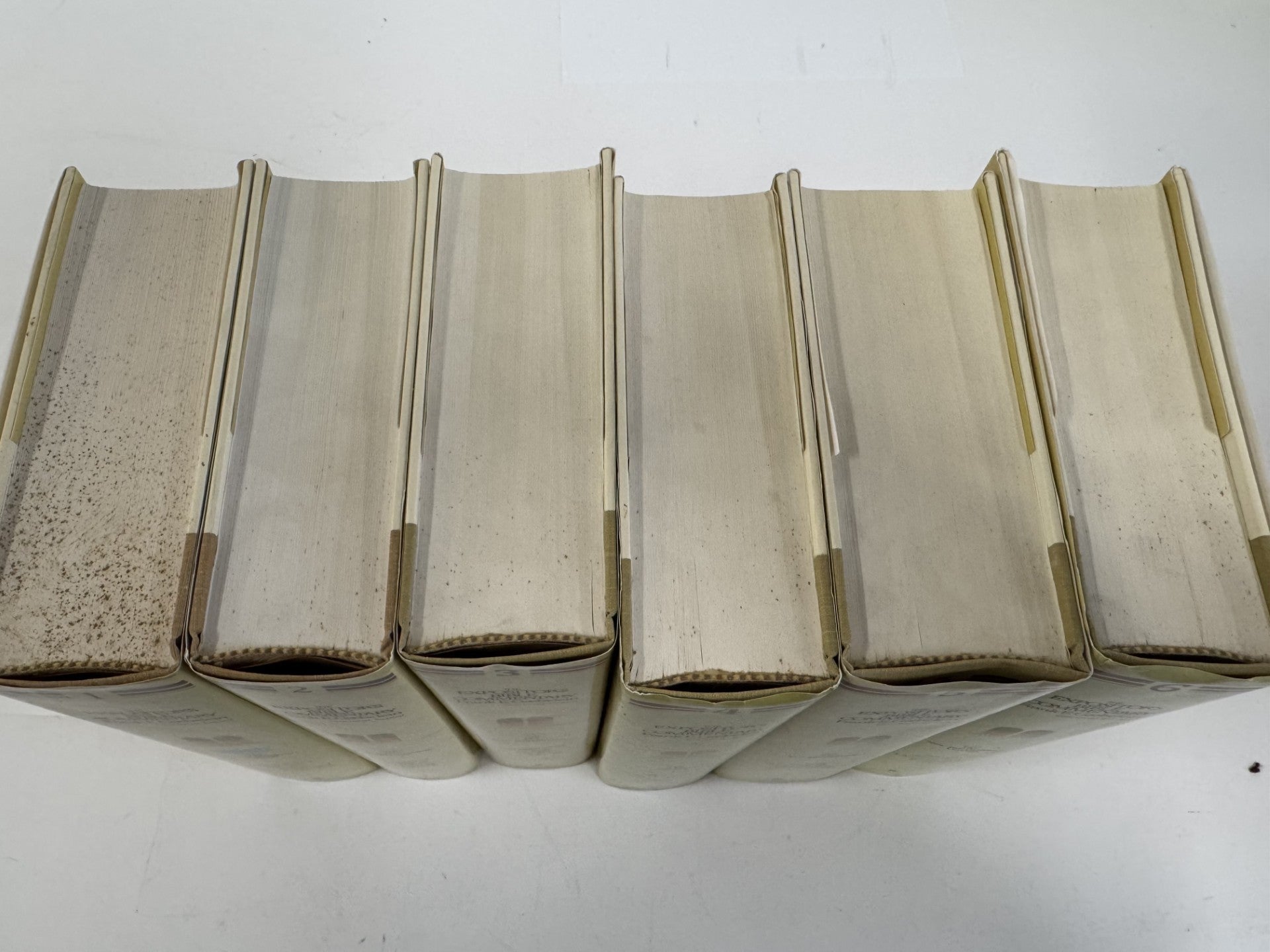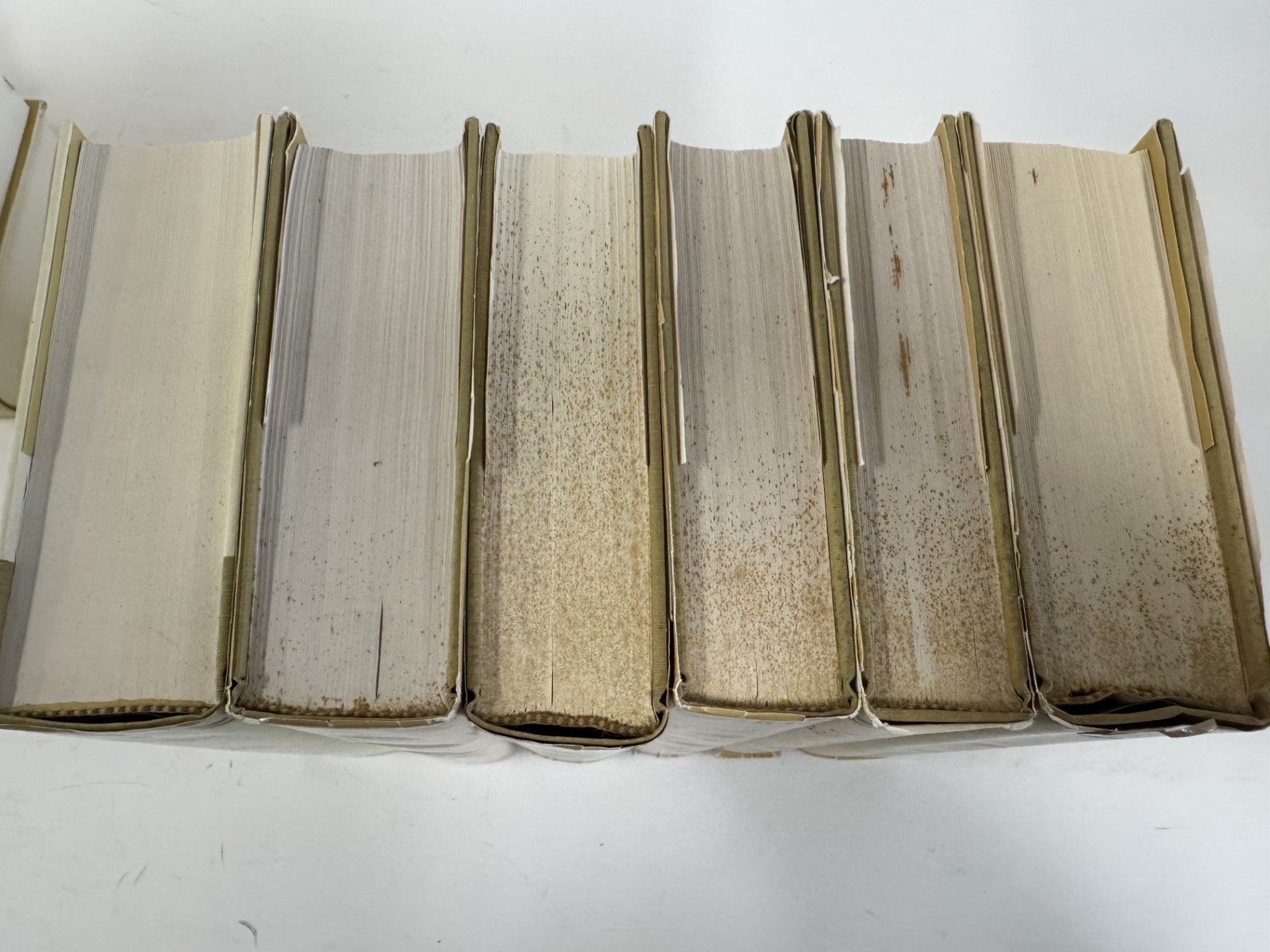 Text is clean and unmarked. Brown spots on top outside edges of pages. See pictures.